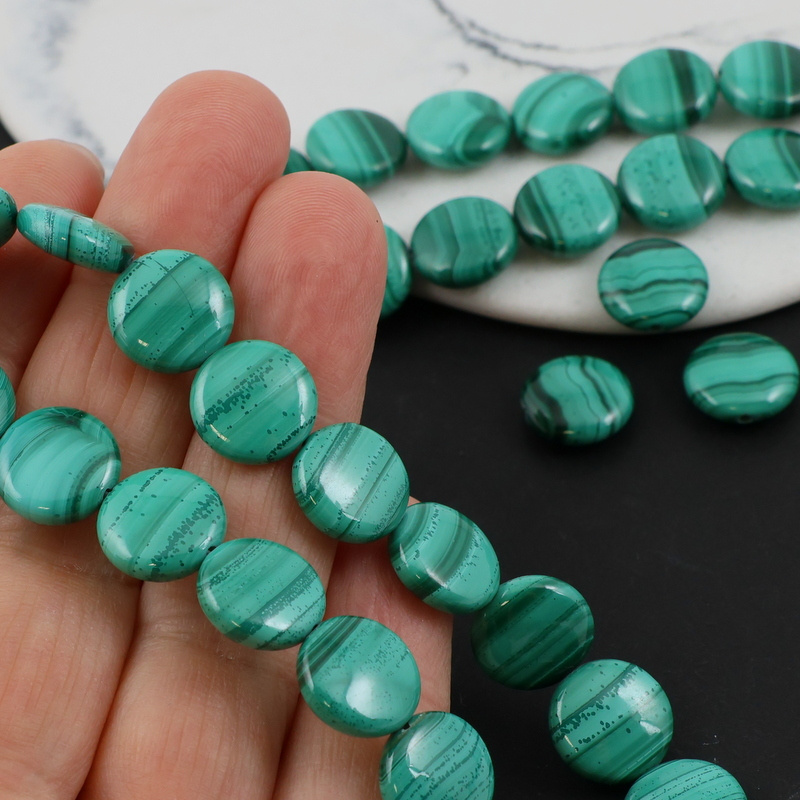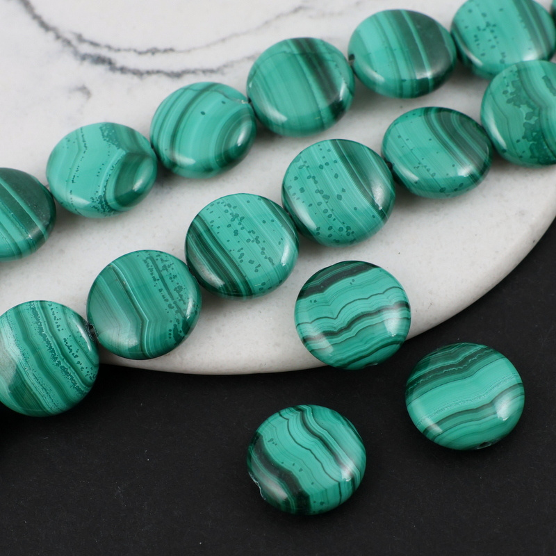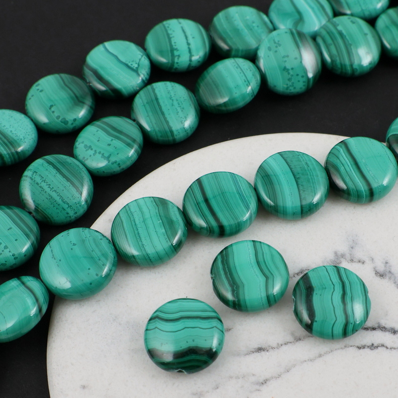 Kamienie mają oryginalne malachitowe paseczki i smugi. Każdy kamień ma inny wzór.