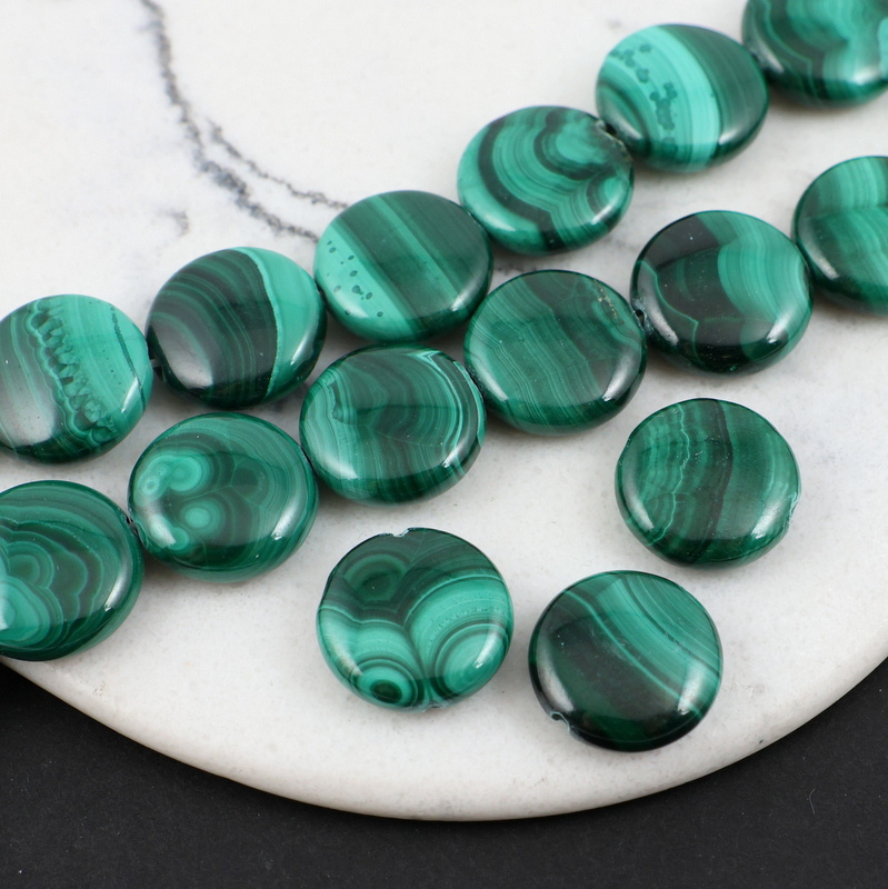 Gładkie monetki naturalnego malachitu.