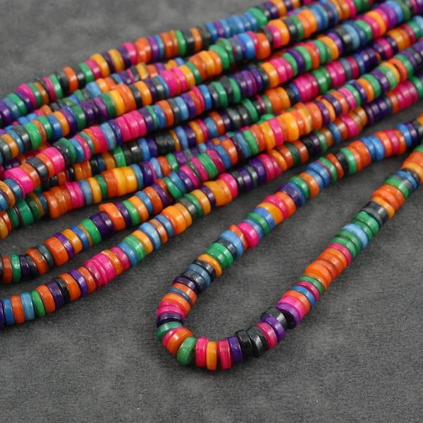 OpisBardzo kolorowe krążki / dyski masy perłowej zebrane na sznurze. Do folkowych projektów.