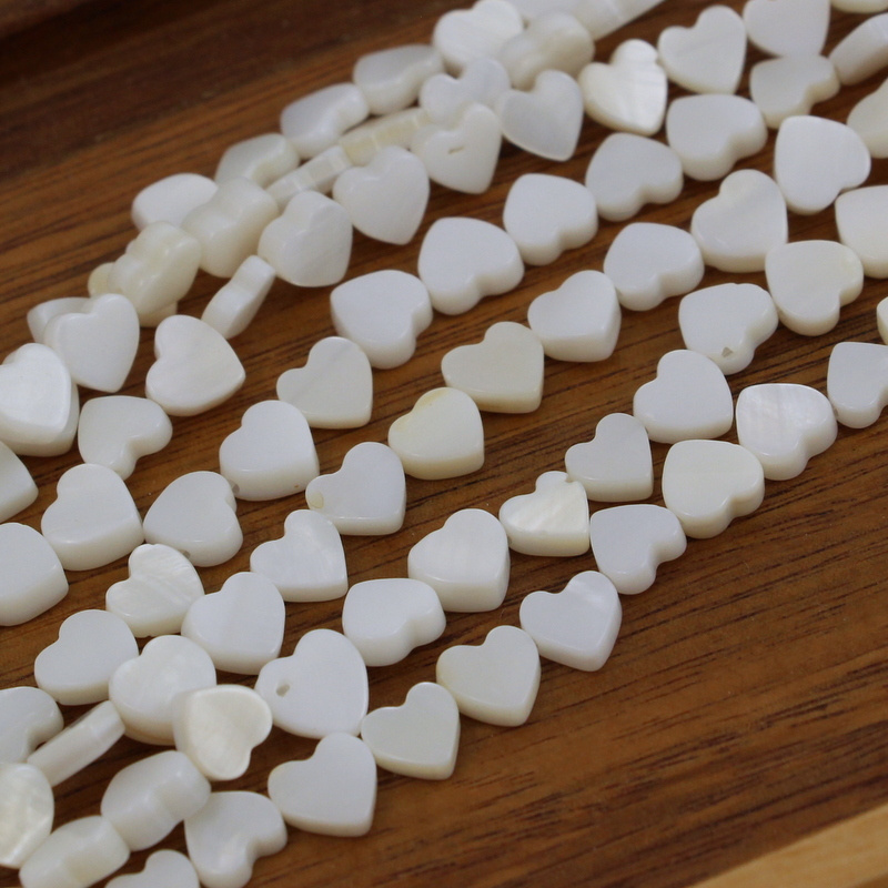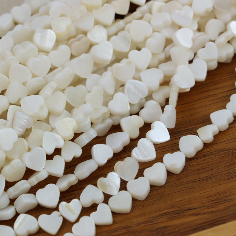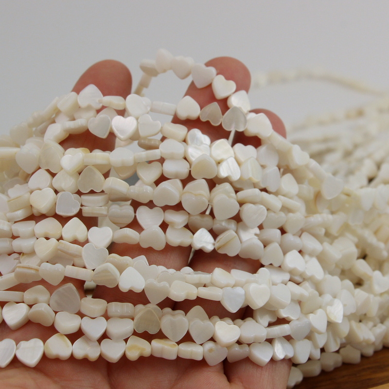 Małe serduszka białokremowej muszli. Dzięki opalizacji serca będą ozdobą w każdej biżuterii.