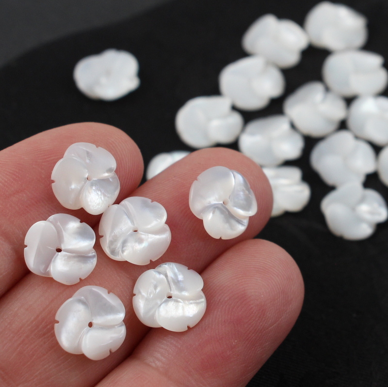Oryginalne małe, rzeźbione z muszli kwiatuszki. Wyglądają delikatnie, ale są twarde i nie kruszą się.