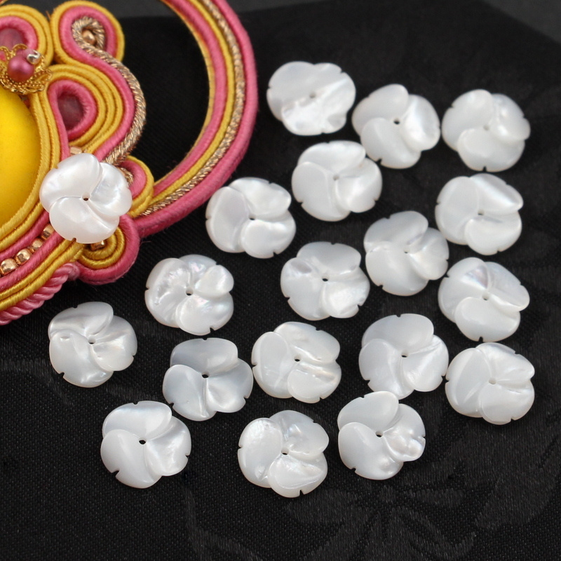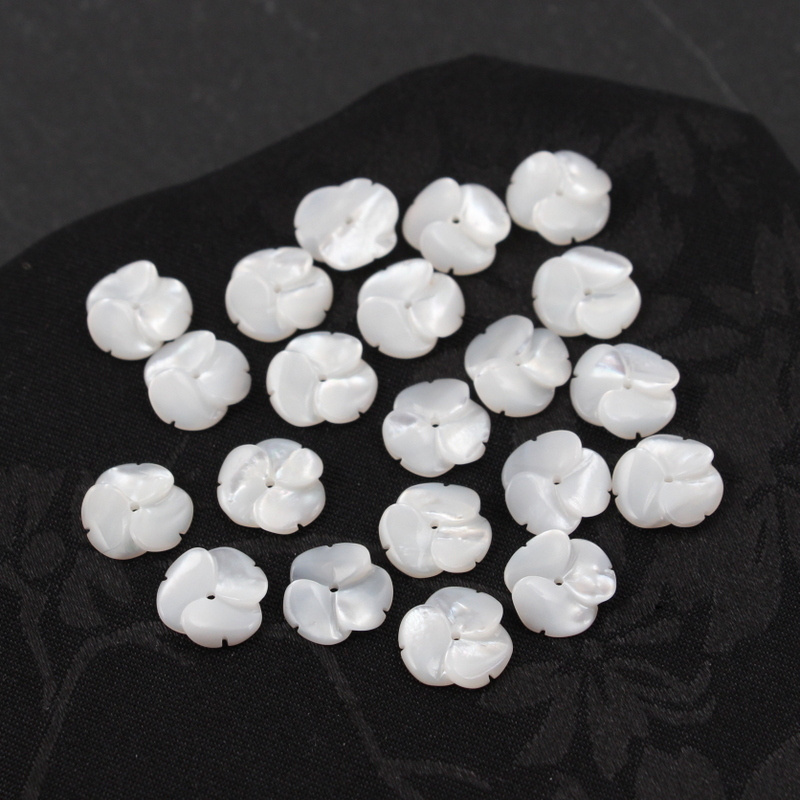 Kształt tych białych koralików przypomina kwiaty wiśni (sakura). Mają one zaokrąglone, lekko karbowane płatki.