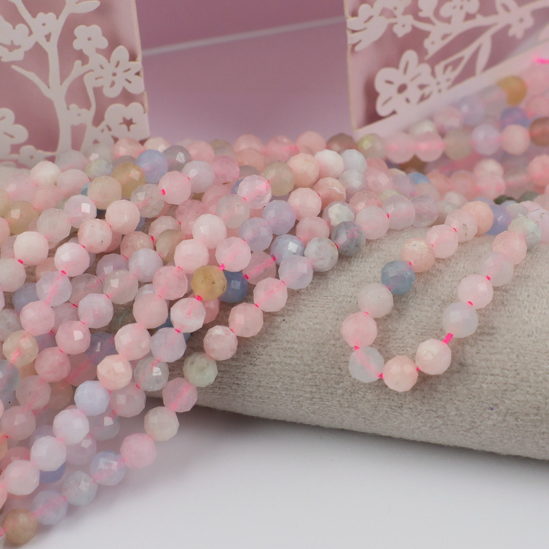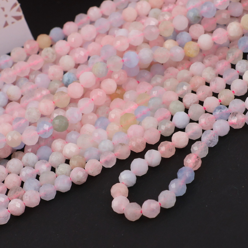 Pastelowe kule fasetowane naturalnego morganitu. Polecamy na bransoletki, naszyjniki.