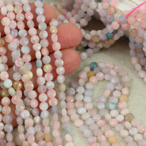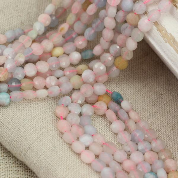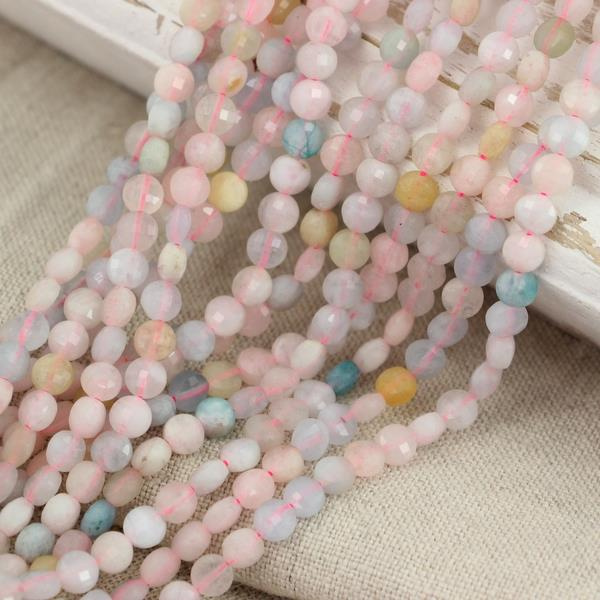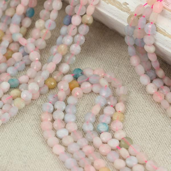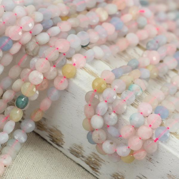 Morganit moneta fasetowana 4mm [sznur 39cm]