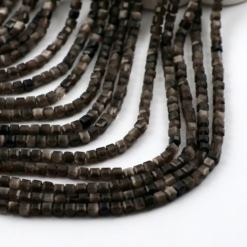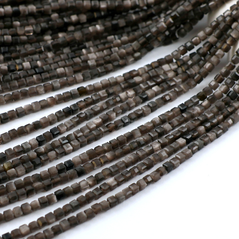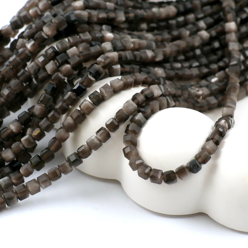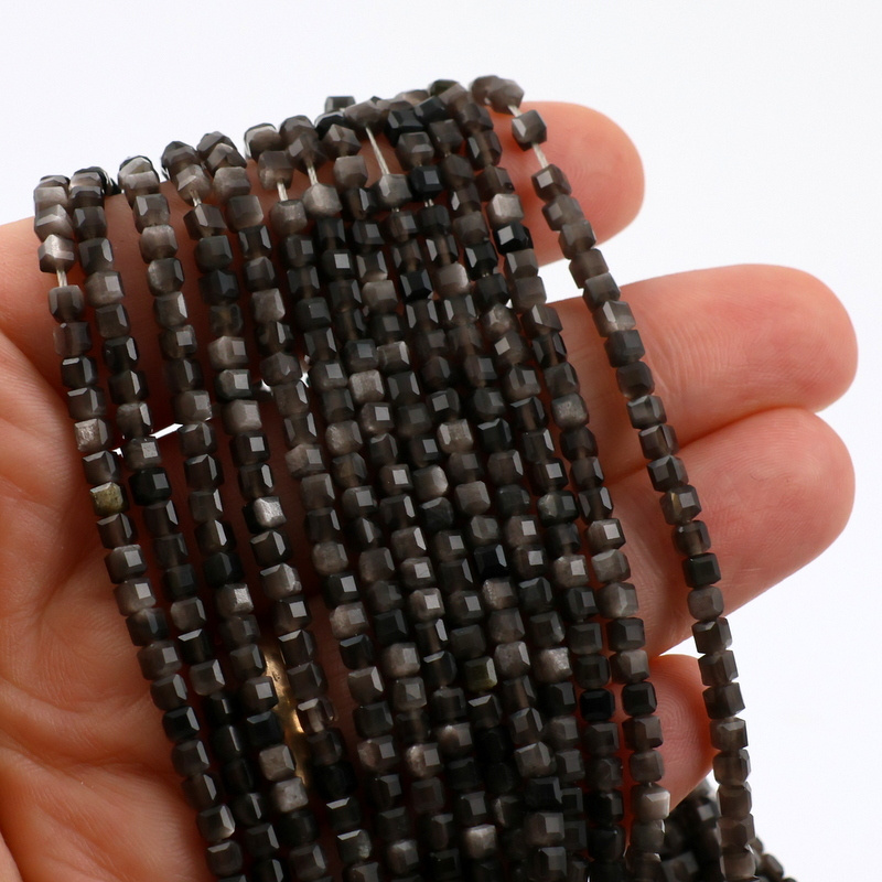 Obsydian srebrny kostka fasetowana 3,5mm [sznur 39cm]