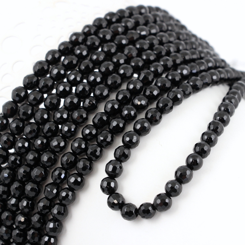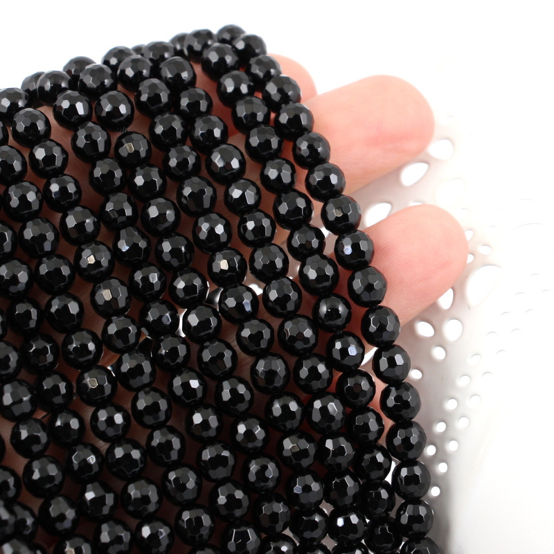 Czarne kulki fasetowanego onyksu idealne do bransolet, naszyjników, projekty gronkowe itp.