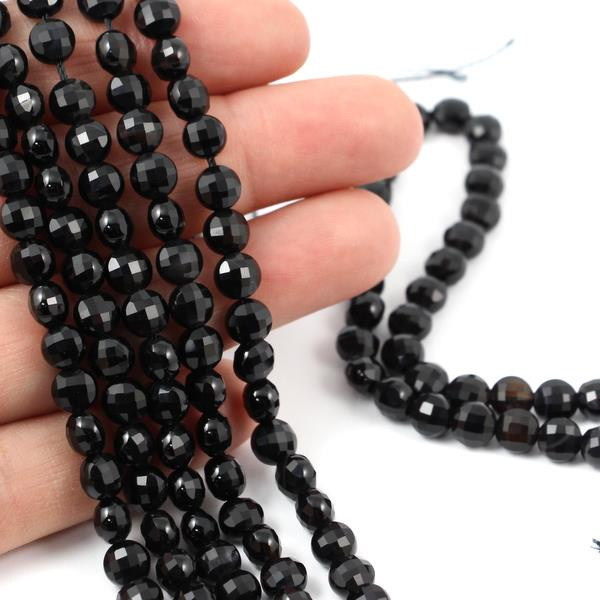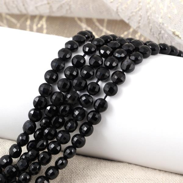OpisMałe, drobno fasetowane monetki naturalnego onyksu.
