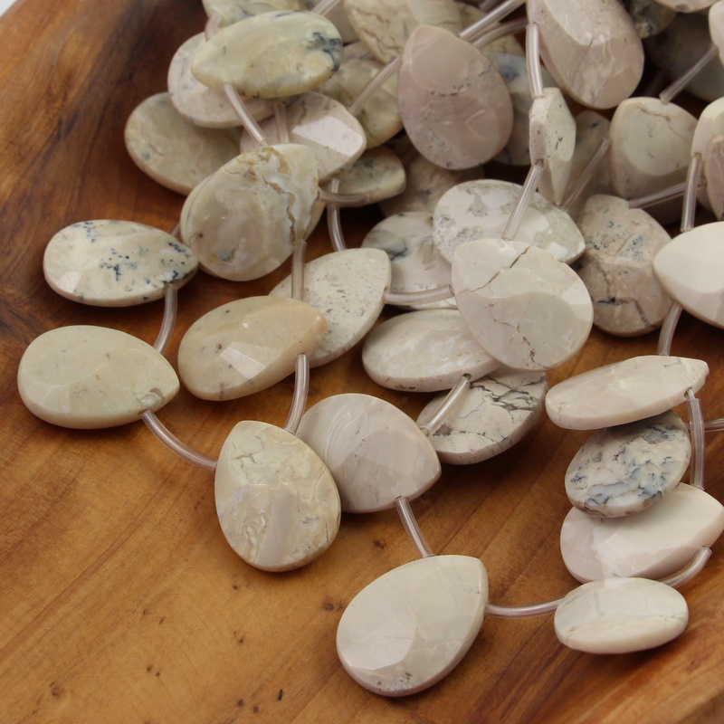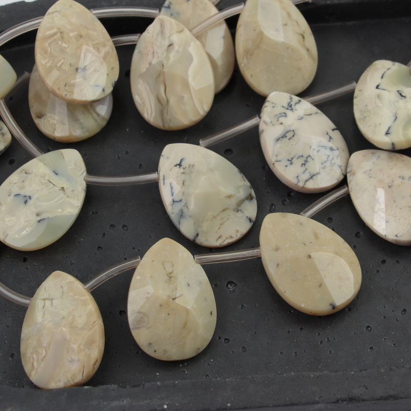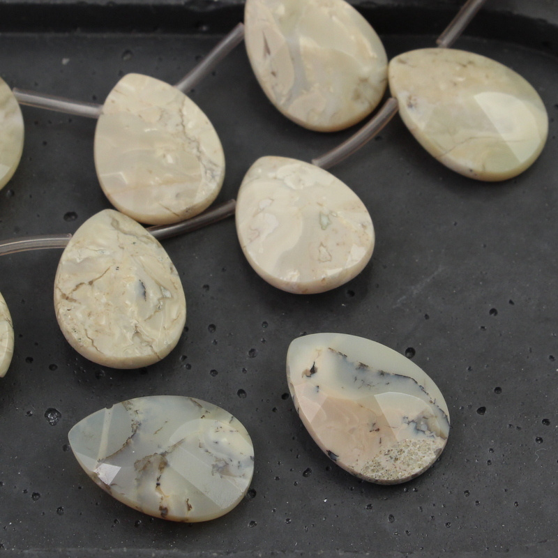 Naturalny opal afrykański, fasetowane łezki piaskowo-szare z pięknymi naturalnymi wtrąceniami.