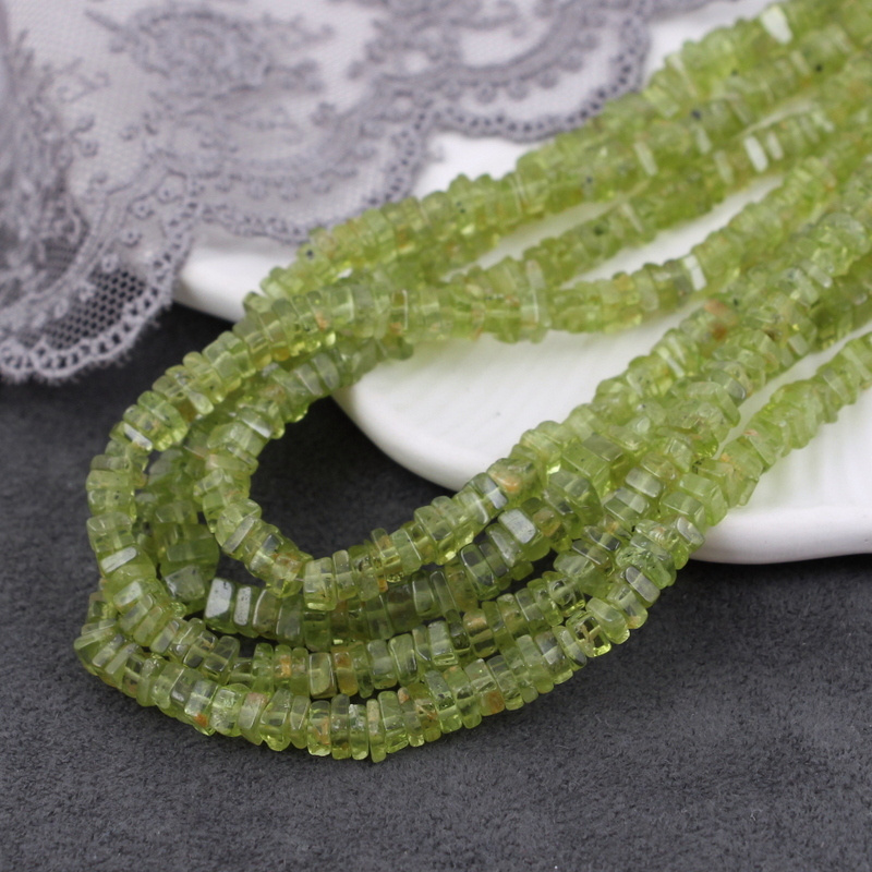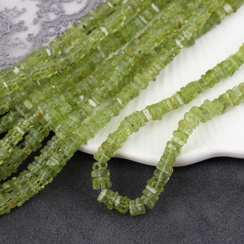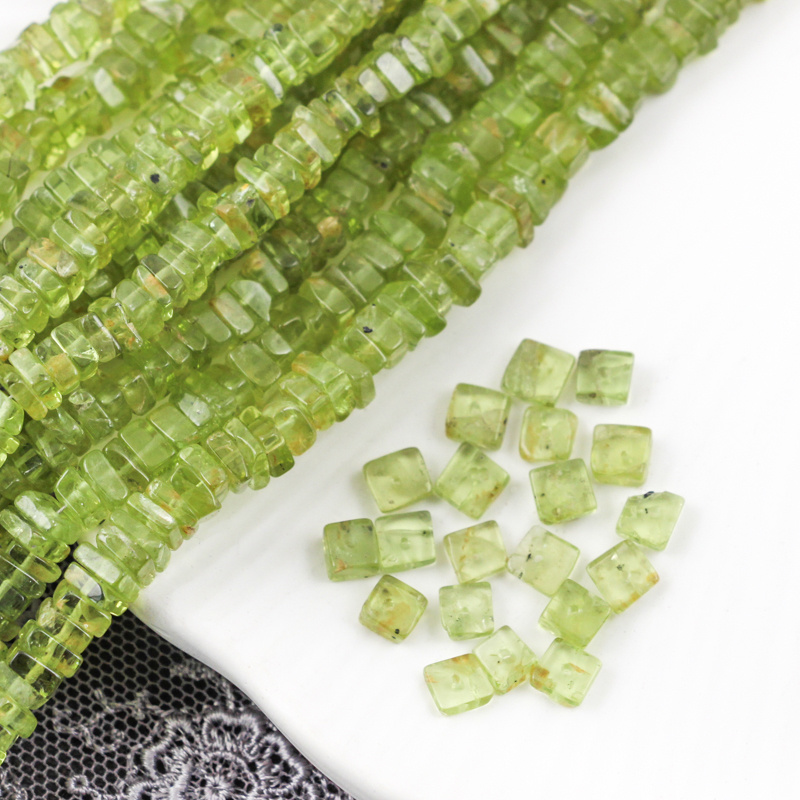Oliwkowy perydot w kształcie małych kwadratów. Idealny na drobne akcenty w biżuterii, do wire wrappingu i różnych minimalistycznych projektów biżuteryjnych.