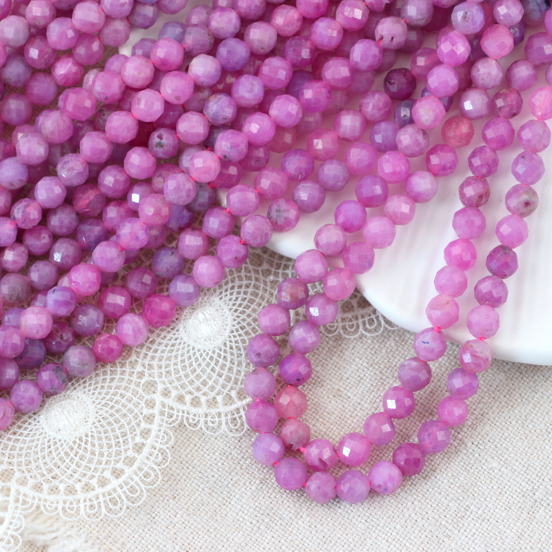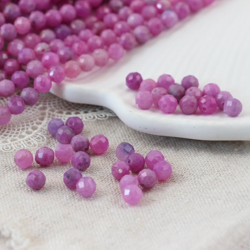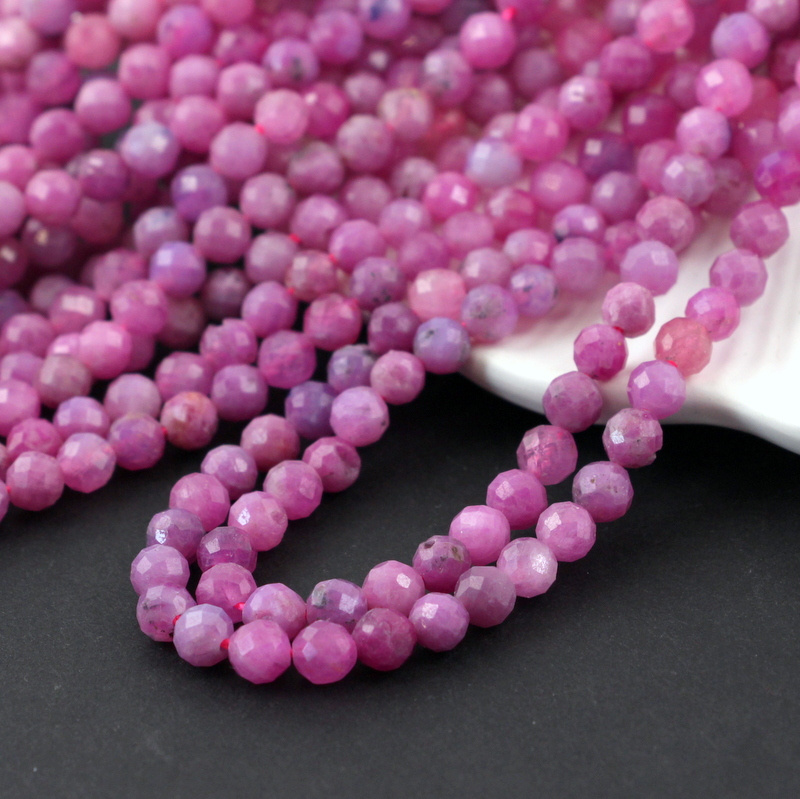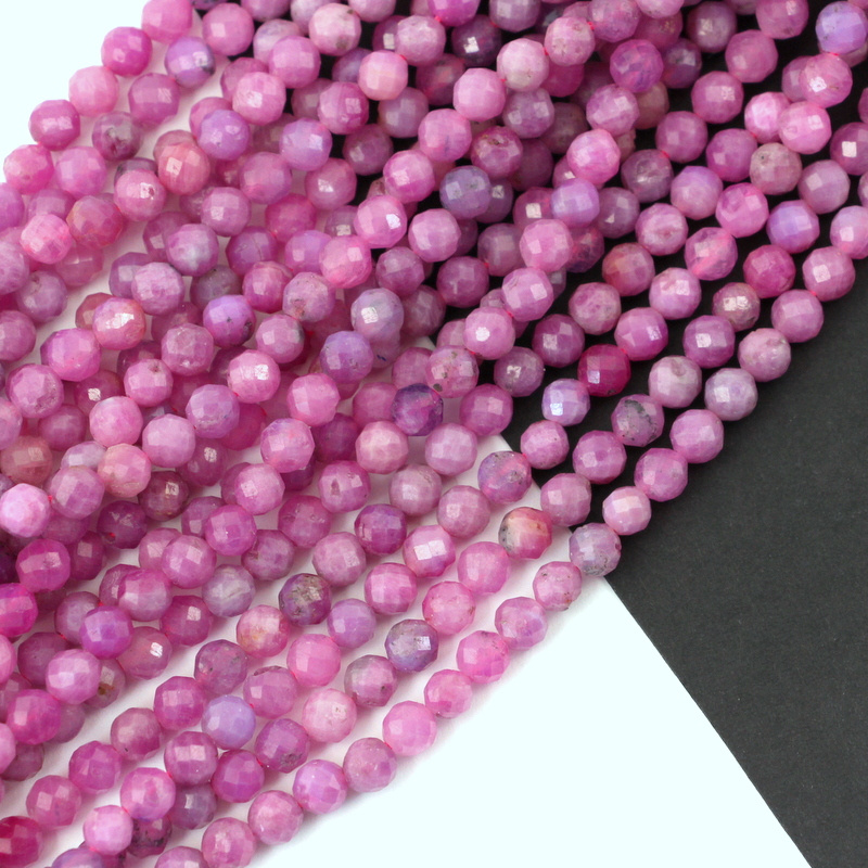 Naturalny rubin w formie fasetowanej kulki w jasnej malinowo-różowej tonacji.