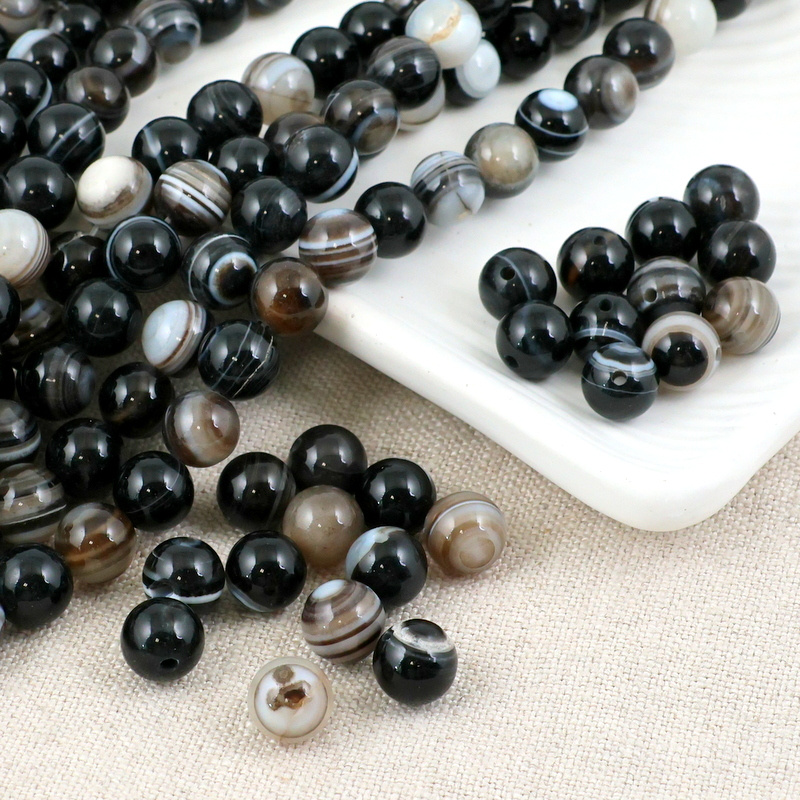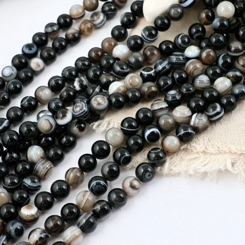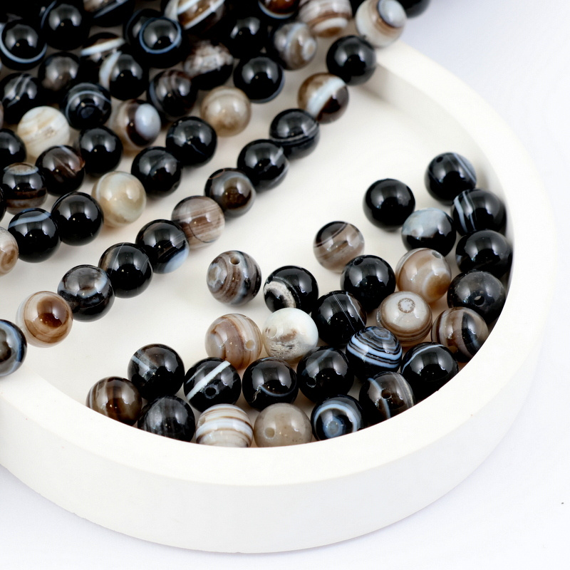 Naturalny kamień półszlachetny – Sardonyks, szlifowany w formie gładkiej kuli o średnicy 8 mm.