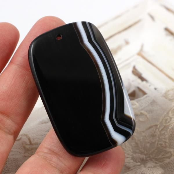 OpisPlaster, duża zawieszka z sardonyksu do zawieszenia na rzemyku, sznurku itp. Można obszyć sutaszem i koralikami.