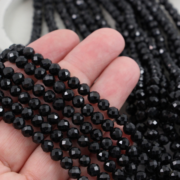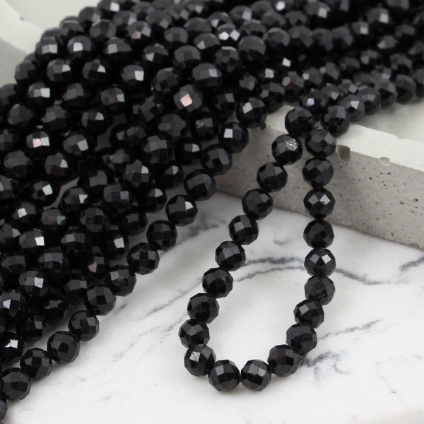 Turmalin czarny kula fasetowana 5mm [sznur 39cm]
