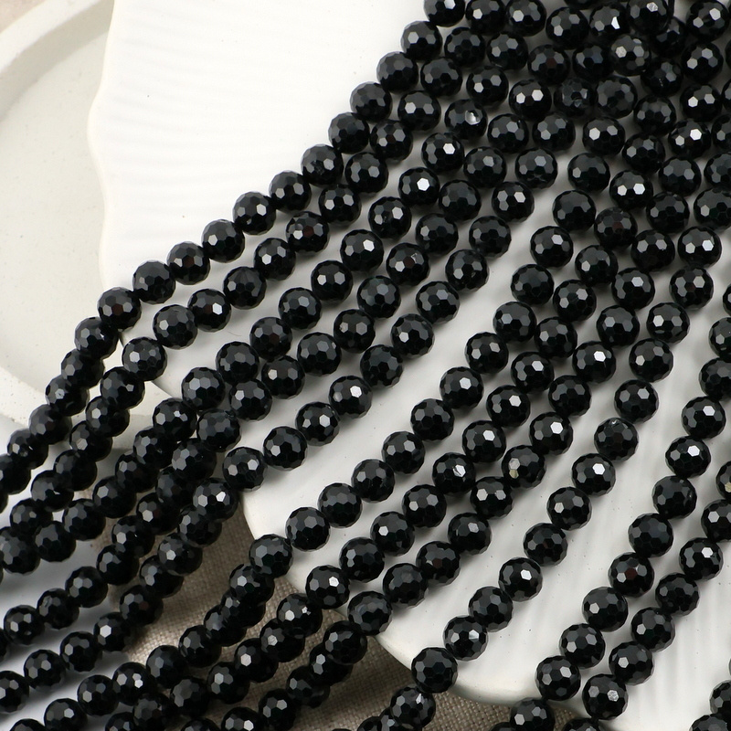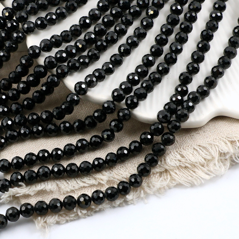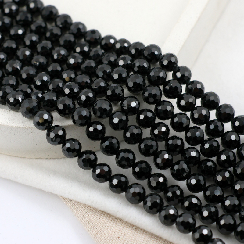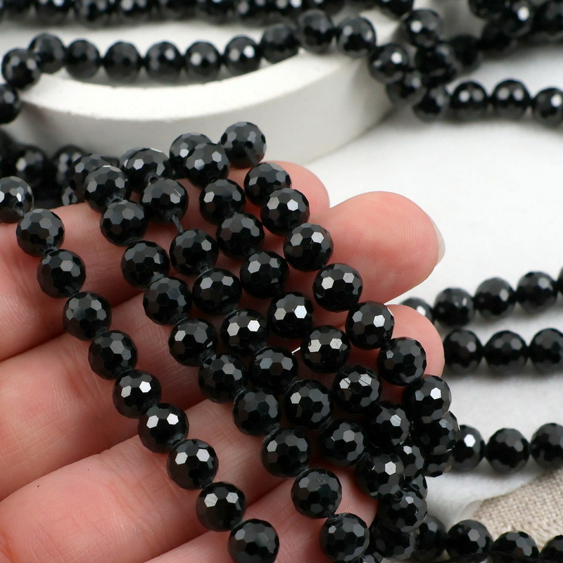 Błyszczące, fasetowane kule czarnego turmalinu. Polecamy na bransoletki, kolczyki i dodatki.