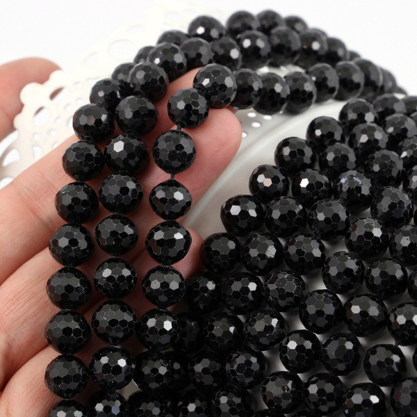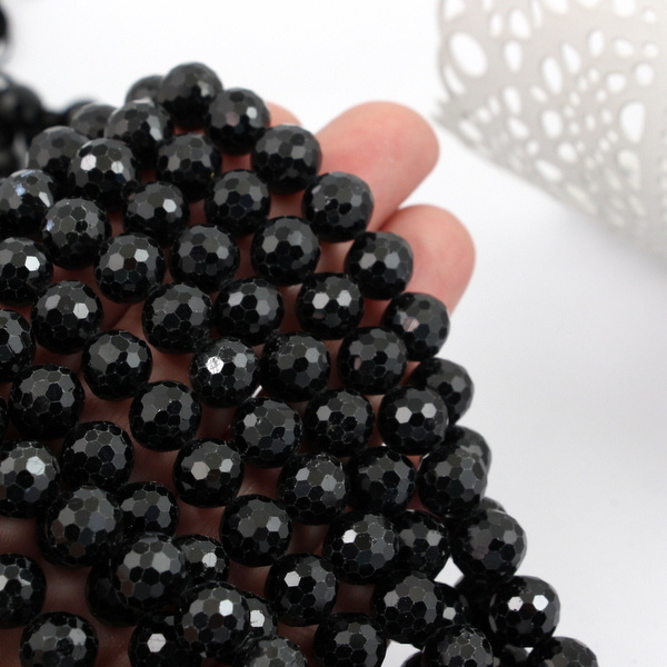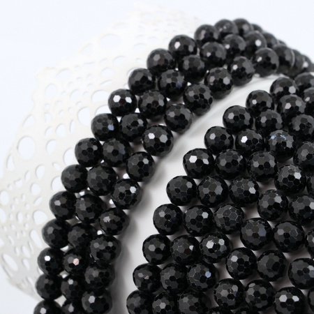 Turmalin czarny kula fasetowana 8mm [sznur 39cm]