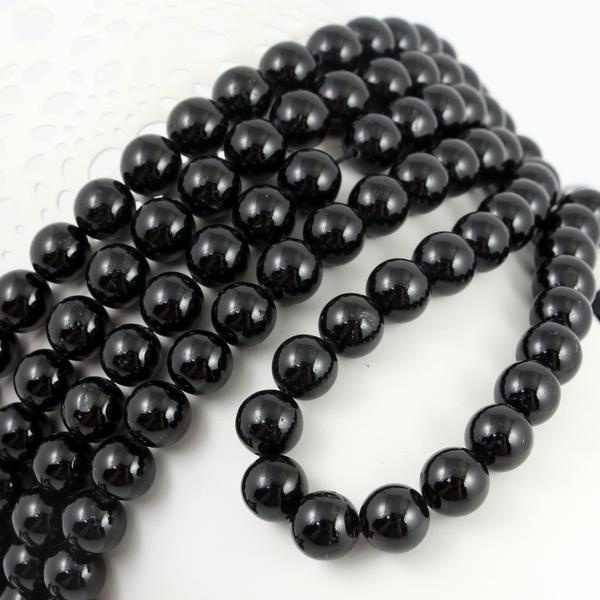 Czarny turmalin - kulki w rozmiarze 10-10,5mm. Czarny turmalin nie jest całkiem czarny, ma minimalne jaśniejsze refleksy.