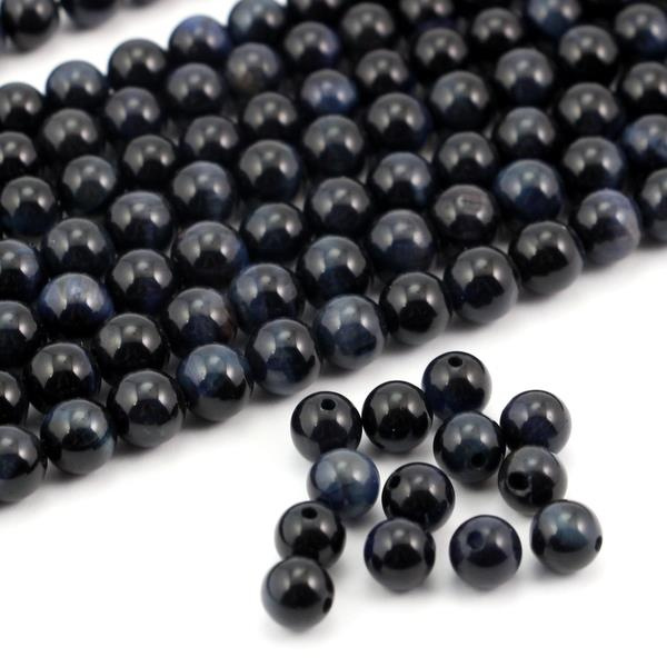 OpisNiewielkie kuleczki tygrysiego oka w kolorze niebieskim. (Blue tiger eye), kulki właściwie ciemnogranatowe lub czarne z niebieską poświatą. Kule wykazują efekt tygrysiego oka. Polecamy na bransoletki, kolczyki i dodatki.