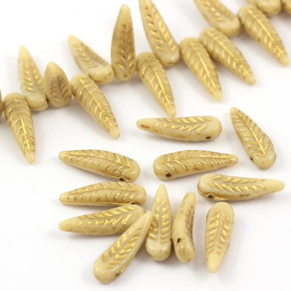 Bird Feather Beads Beige Gold 5x17mm [6szt]