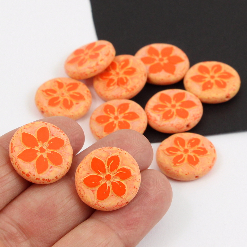 Szklana moneta z kwiatkiem Opaque Orange 18mm