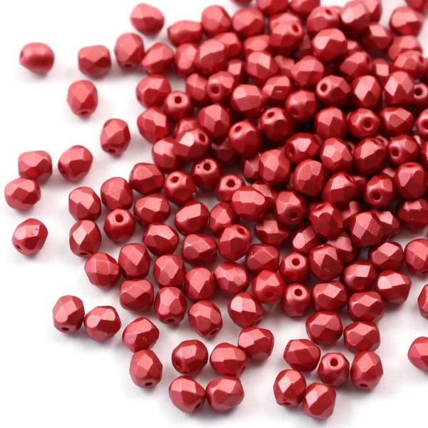 Fire Polish 4mm Alabaster Pastel Dark Coral [40szt]