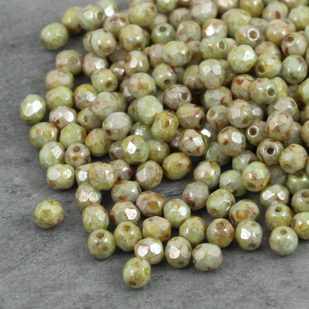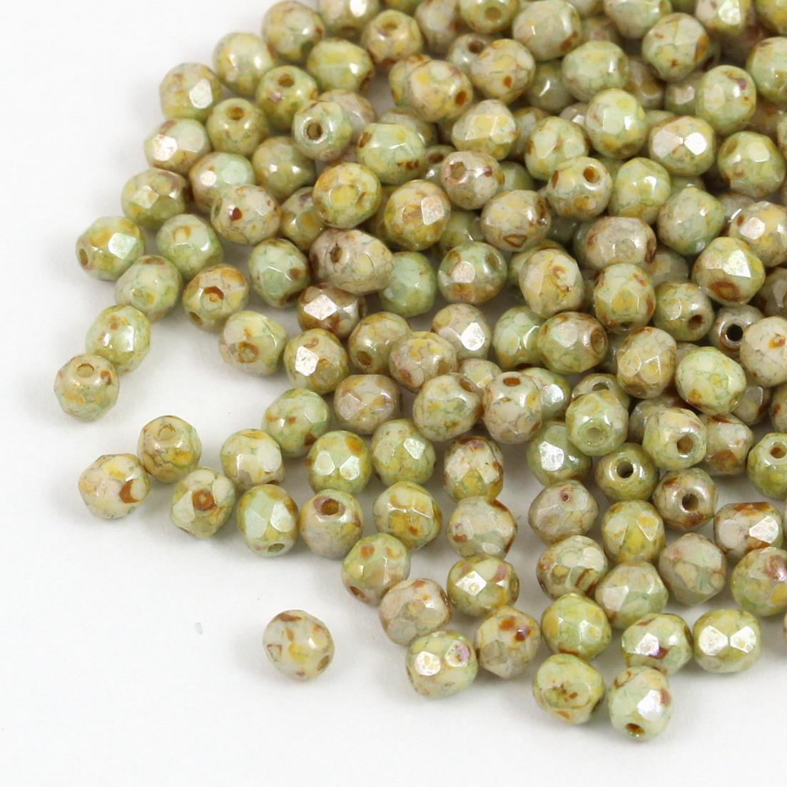 Fire Polish 4mm Chalk White Green Senegal Matte [20szt]