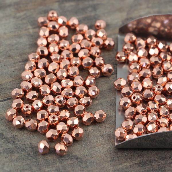 Szlifowane koraliki szklane produkowane w Czechach, kolor miedziany (różowe złoto).