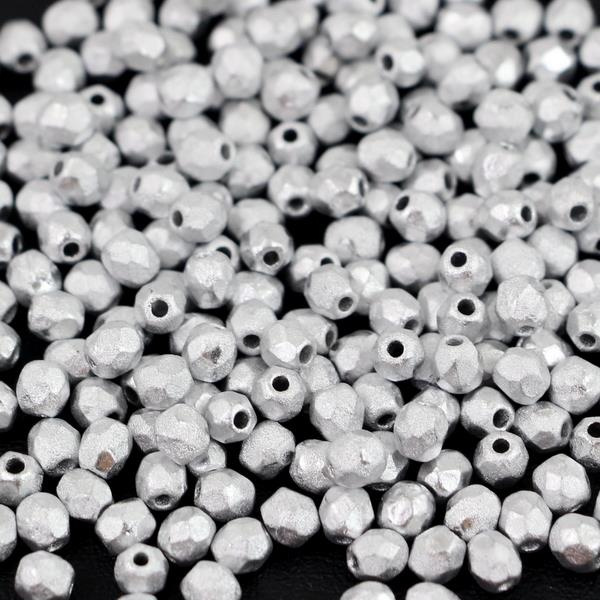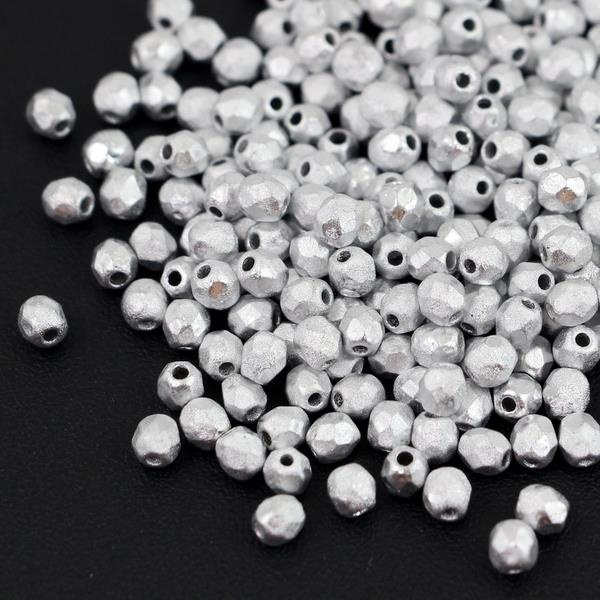 OpisSzlifowane koraliki produkowane w Czechach, srebrne, trawione.