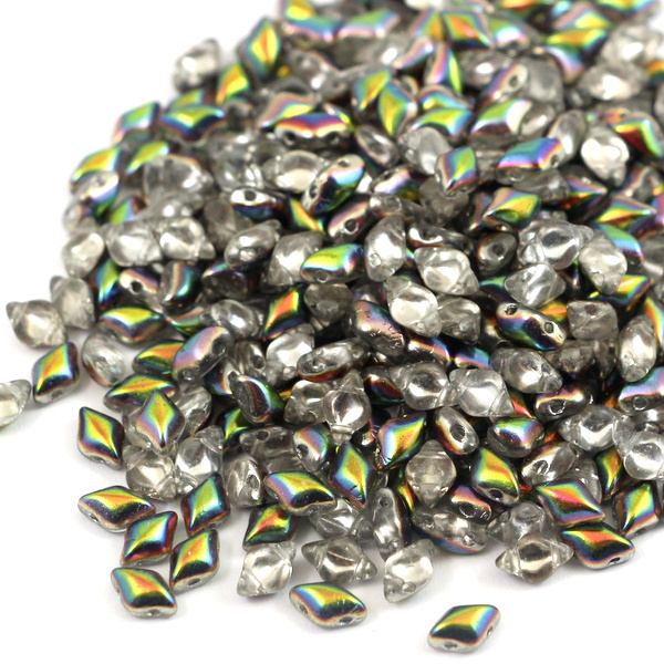 Wysokiej jakości szklane koraliki MATUBO GEMDUO™ produkowane w Czechach. Ich oryginalny kształt pobudza do kreowania ciekawych form biżuteryjnych, GemDuo prezentują się ładnie zarówno w formach płaskich jak i przestrzennych. Koraliki GemDuo mają kształt rombów (diamentów) o płaskim wierzchołku a dzięki ostrym liniom, doskonale przylegają do siebie, co daje nieograniczone możliwości formowania motywów. GemDuo są podobne do koralików DiamonDuo, obie serie mają ten sam rozmiar, płaski spód i 2 równoległe otwory, różnią się tylko wierzchołkiem.