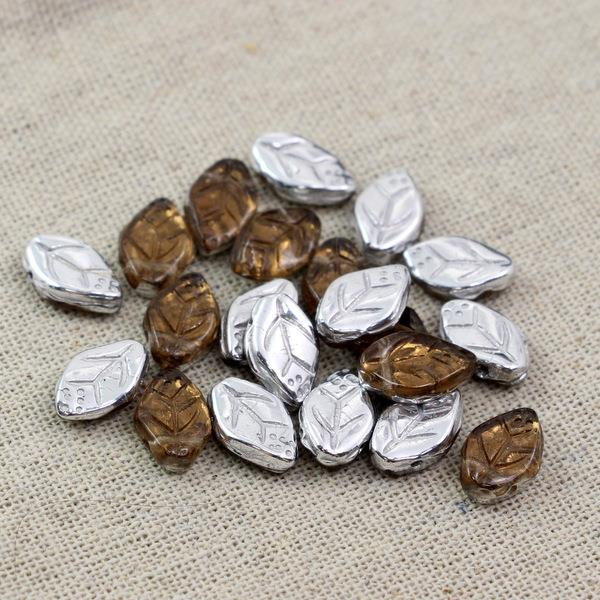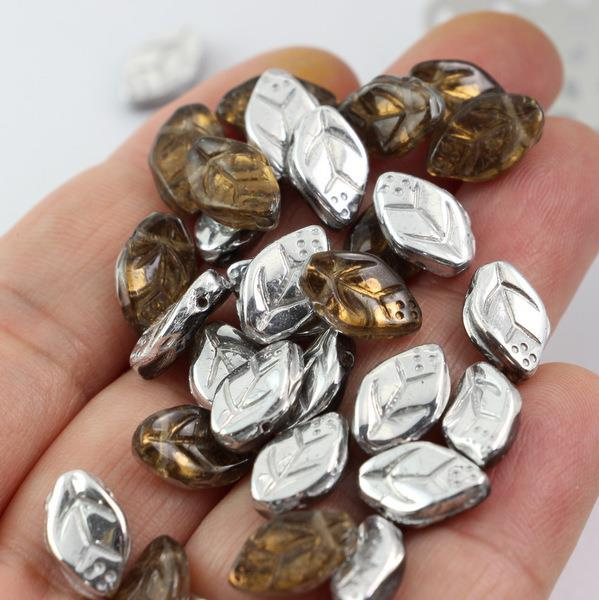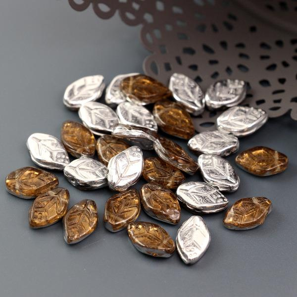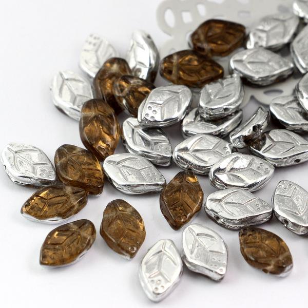 Listek szklany srebrno-brązowy 12x8mm [10szt]