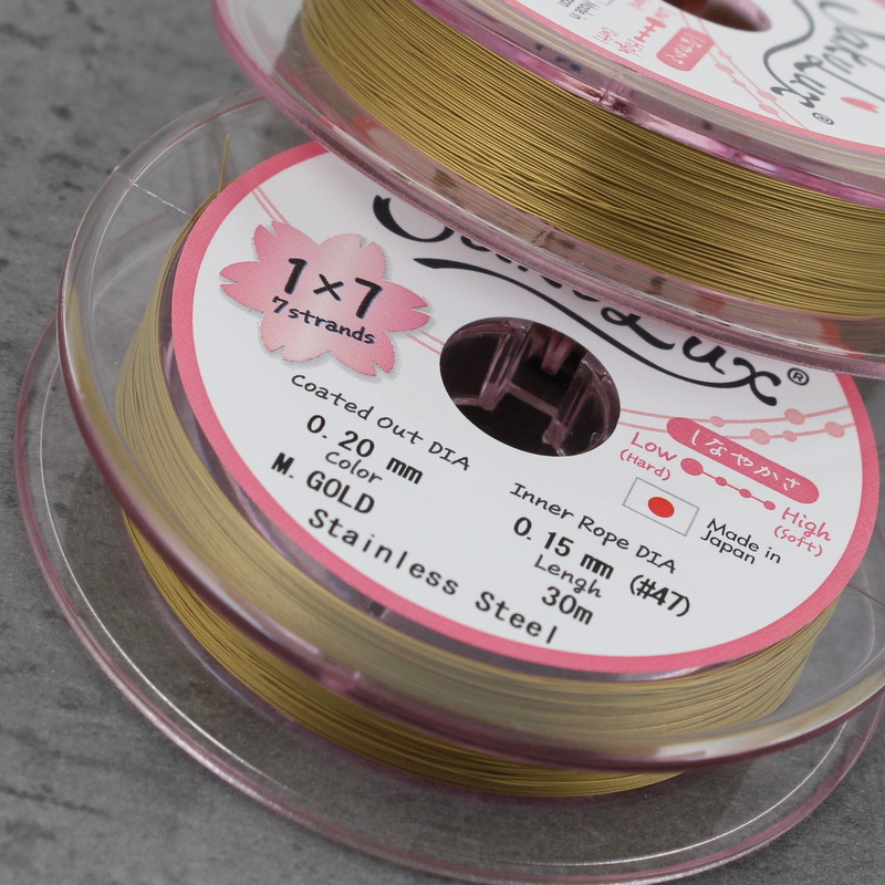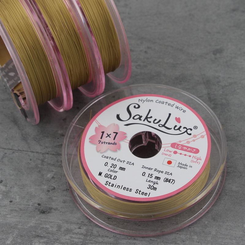 Japońska linka stalowa jubilerska SakuLux 7-splotowa Metallic Gold 0,20mm [szpula 30m]