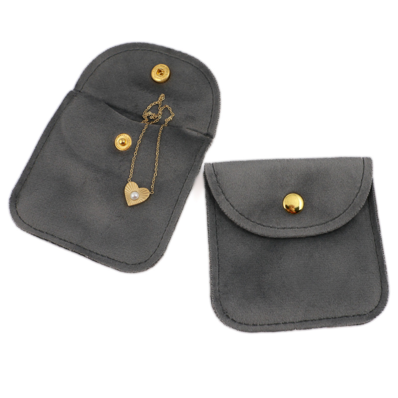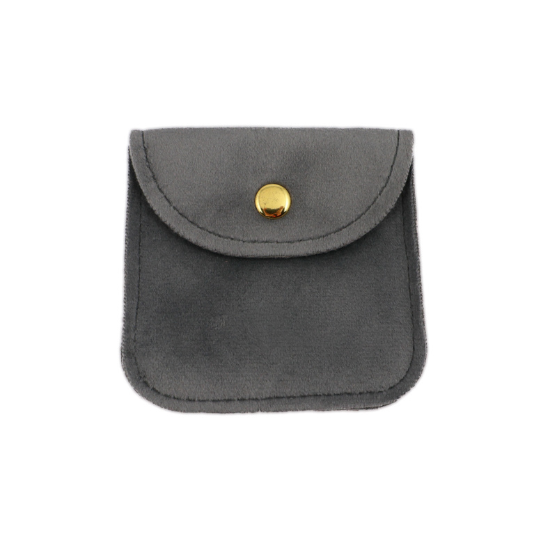 Etui posiada praktyczne zapięcie na złoty zatrzask, które chroni zawartość i nadaje całości ekskluzywny wygląd. Gładka, welurowa powierzchnia dodaje torebce szlachetności, a wnętrze jest delikatne dla biżuterii i zapobiega jej rysowaniu.
