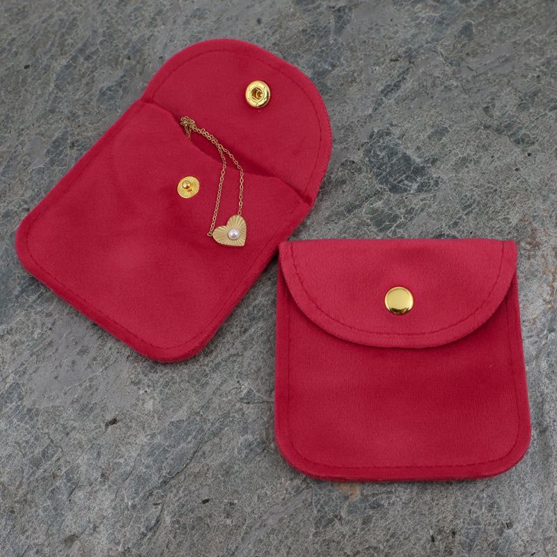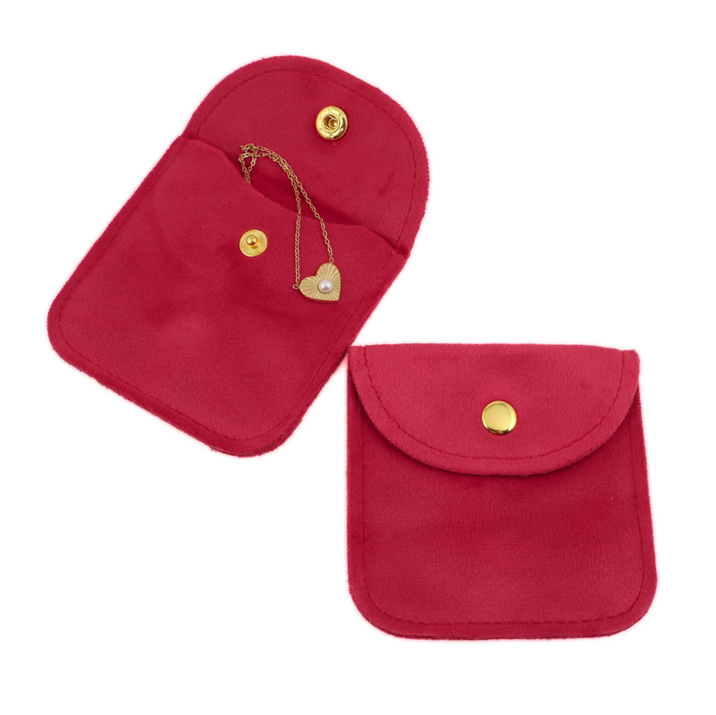 Etui posiada praktyczne zapięcie na złoty zatrzask, które chroni zawartość i nadaje całości ekskluzywny wygląd. Gładka, welurowa powierzchnia dodaje torebce szlachetności, a wnętrze jest delikatne dla biżuterii i zapobiega jej rysowaniu.