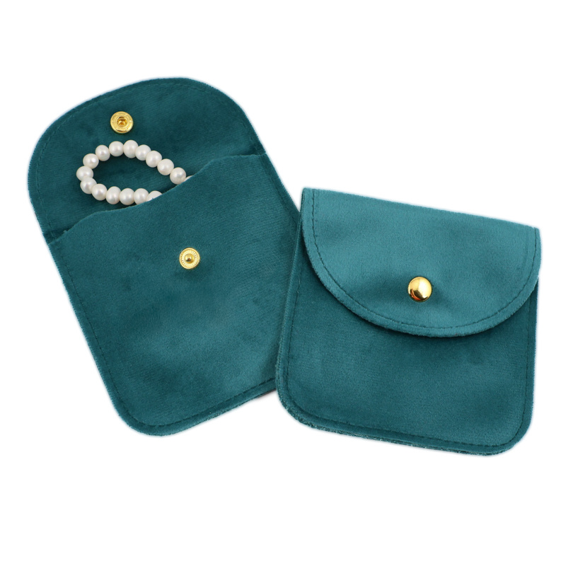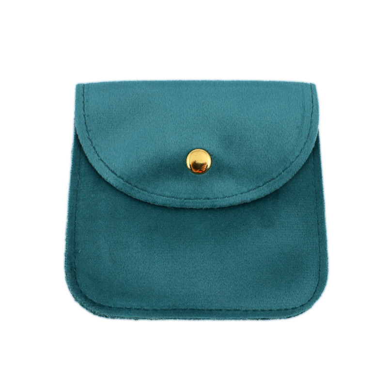 Etui posiada praktyczne zapięcie na złoty zatrzask, które chroni zawartość i nadaje całości ekskluzywny wygląd. Gładka, welurowa powierzchnia dodaje torebce szlachetności, a wnętrze jest delikatne dla biżuterii i zapobiega jej rysowaniu.