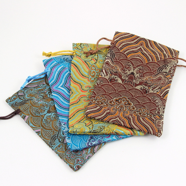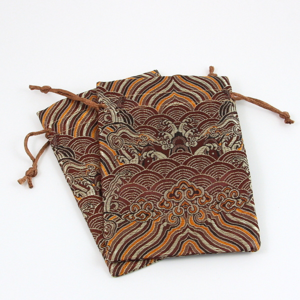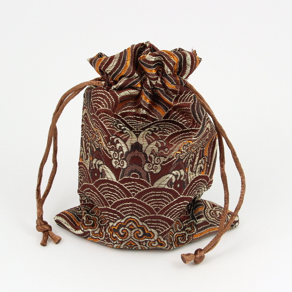 Woreczek (sakiewka) z mięsistej tkaniny żakardowej z połyskiem, ściągany sznureczkiem, sprawdza się do przechowywania gotowej biżuterii i jako opakowanie na prezent.