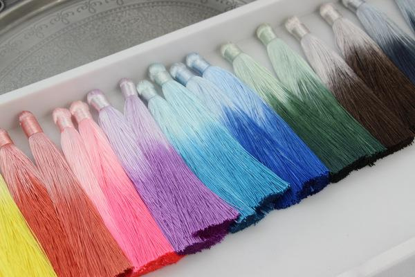 Bardzo dobrej jakości ozdobny chwost z włókna sztucznego pięknie "lejący się", połyskujący, lekki. Chwosty są cieniowane (ostatnio bardzo modny efekt modzie), można je wklejać w tulejkę lub podwieszać na ogniwku. Atrakcyjnie wyglądają z koralikowymi czapeczkami.