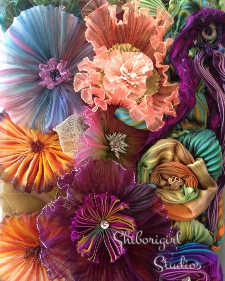 Sposób farbowania jedwabiu powoduje, że nawet na krótkim odcinku można spodziewać się zaskakujących przejść tonalnych, które tworzą niezwykle apetyczną układankę. Jedwabne pasma Shibori znakomicie komponują się z koralikami, kryształami Swarovski i sutaszem. Pasma jedwabne mogą zostać także użyte do stworzenia kwiatowych aplikacji na ubraniach.