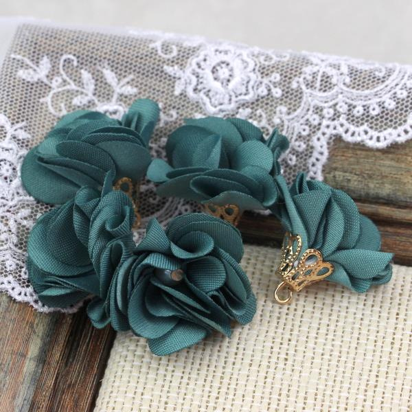 Ozdobne, delikatne kwiatuszki w formie zawieszki. Kwiatki wykonane z tkaniny ujęte w ażurową tulejkę. Kwiatków można używać do ozdoby naszyjników, kolczyków czy bransolet. Pięknie wyglądają w biżuterii gronkowej lub jako uzupełnienie projektów z sutaszu.