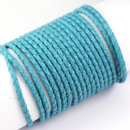 Rzemień skórzany pleciony turkusowy 3mm [1metr]