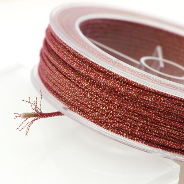 OpisSznurek metaliczny w kolorze czerwonym. Rdzeń sznurka wykonany z nylonu. Polecamy do makramy, szydełkowania, sznurek dość sztywny, rdzeń topliwy.