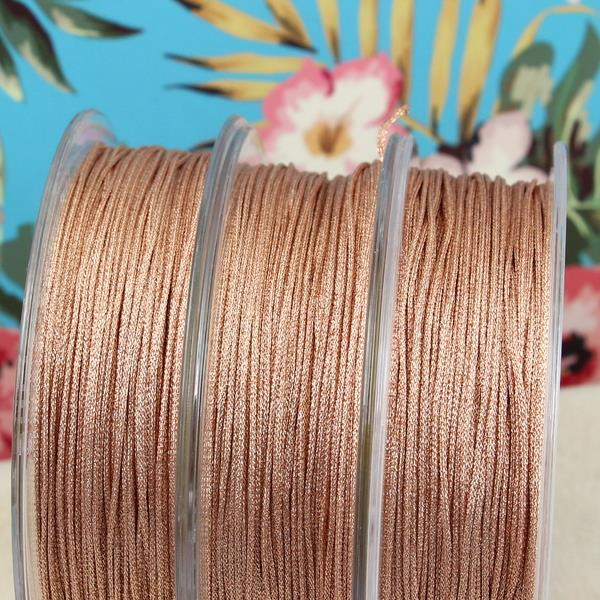 OpisSznurek metaliczny, nylonowy w kolorze różowego złota. Polecamy do makramy, szydełkowania, sznurek mocny, dość sztywny, nietopliwy.