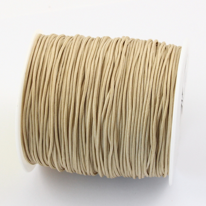 Wysokiej jakości sznurek do bransoletek w kolorze beżowo-złotym. Sznurek nylonowy polecamy do bransoletek makramowych i plecionek, bransoletek przyjaźni oraz bransoletek z zawieszką i supłami przesuwnymi. Wykończenie sznurka jest matowe z widocznym spotem włókiem. Ze względu na materiał - nylon, sznurek jest topliwy, dzięki czemu możemy estetycznie wykończyć robótkę.