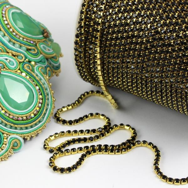 Taśma ozdobna cyrkoniowa gold/jet 3mm [30cm]