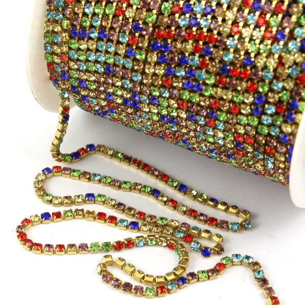 Taśma ozdobna cyrkoniowa gold/multikolor 3mm [50cm]