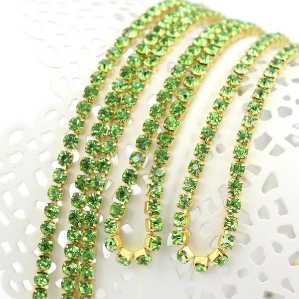 Taśma ozdobna cyrkoniowa gold/peridot 3mm [50cm]