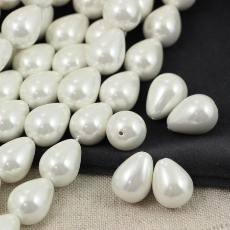 Perła seashell kropla biała 14x10mm