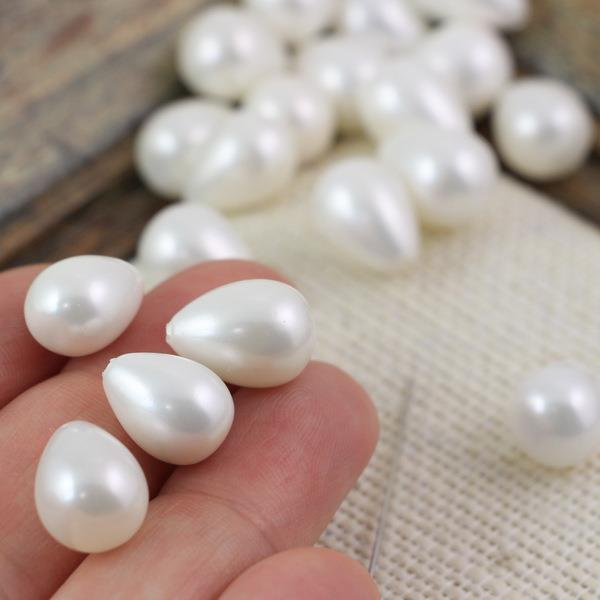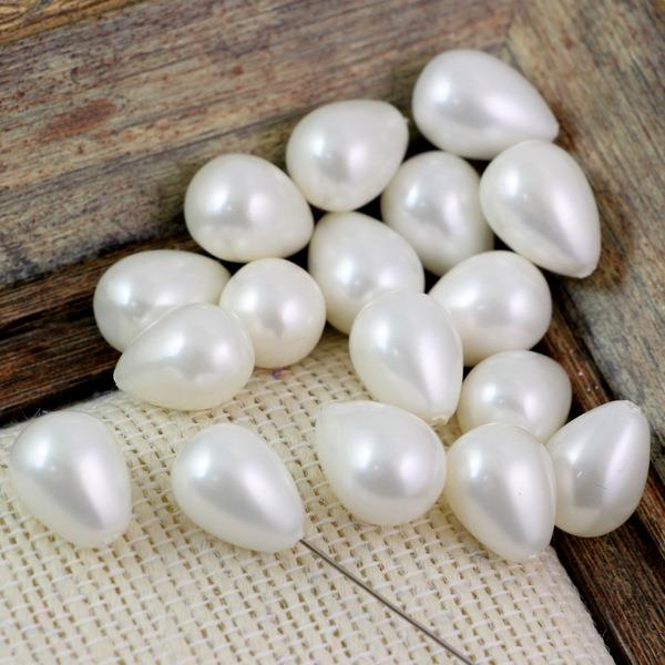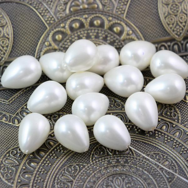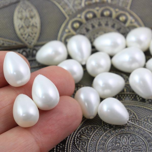 Perła seashell kropla biała wiercona do połowy HQ 14x10mm