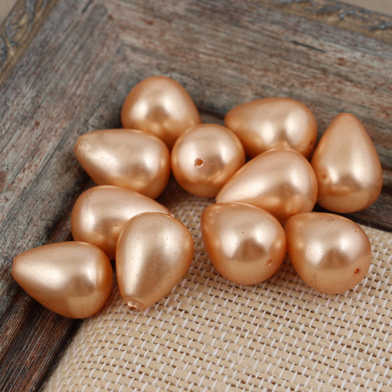 Perła seashell kropla złoto-brzoskwiniowa 18x13mm