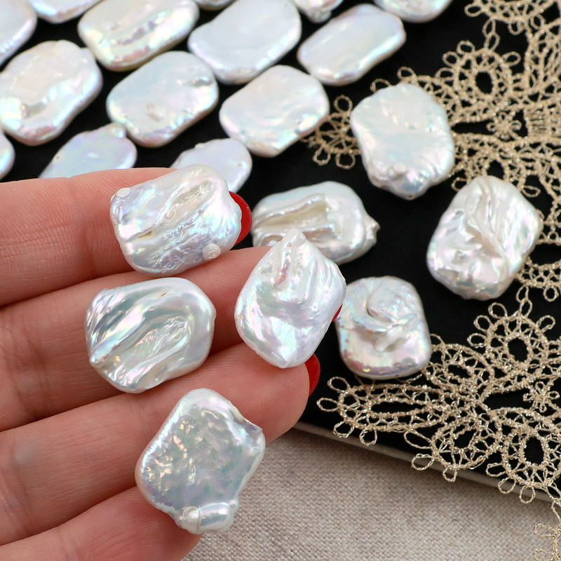 Perła słodkowodna baroque biała nieregularny prostokąt 20x15mm