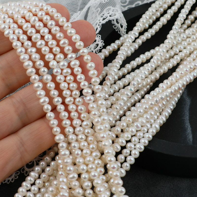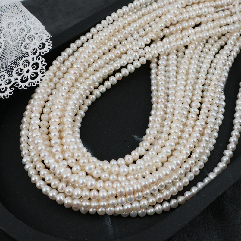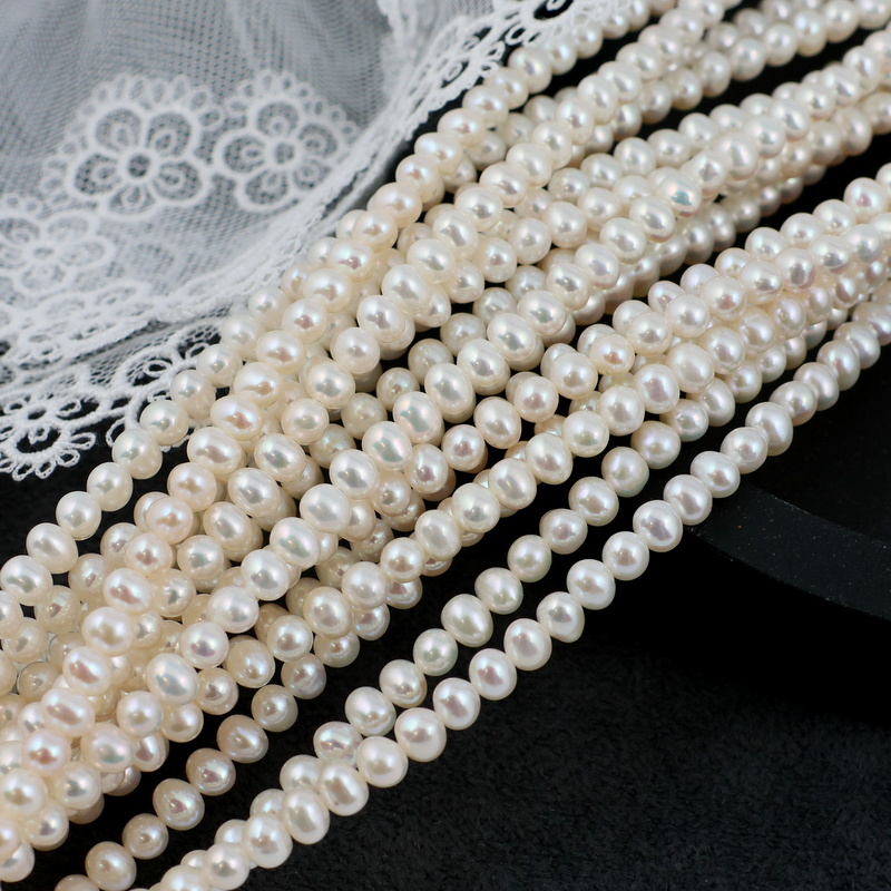 Perła słodkowodna biała kula 4-5mm [sznur 39cm]