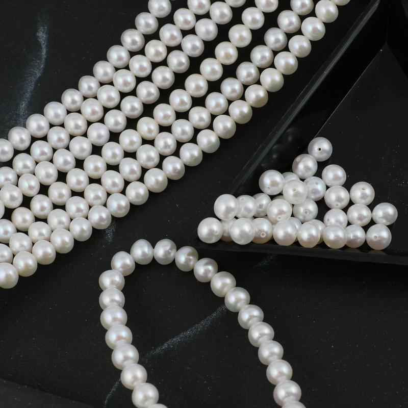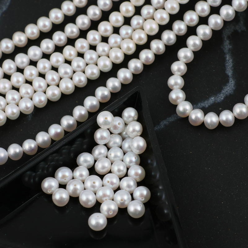 Wysokiej jakości perły słodkowodne w kształcie kulek. Kolorystyka biel/ecru.